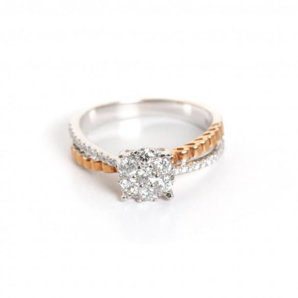 Cincin Berlian yang satu ini terdiri dari perpaduan emas putih dan emas rose sehingga tampak sangat elegan dan mewah bagi siapapun yang memakainya.ÂÂ