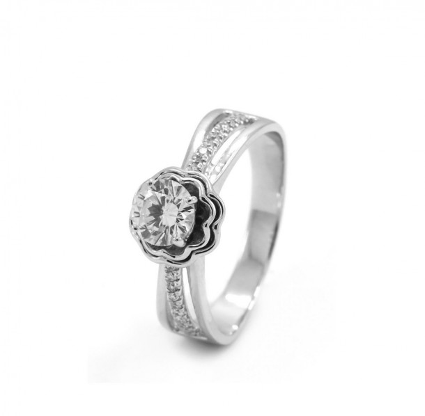 Memiliki desain yang begitu cantiksalah satu model cincin tunangan dari koleksi V&Co Jewellery ini akan terlihat begitu manis pada jari Anda. Dengan variasi cincin yang glossy and doff yang memaksimalkan kilau emas putih dan lapisan rhodium yang memberinya sifat anti korosicincin tunangan yang satu ini terlihat begitu modern dengan bagian center yang mengambil bentuk bunga yang mekar dan setengah lingkar yang memiliki bentuk triple lines. Berlian yang dipergunakan memiliki potongan round dengan tingkat kejernihan VVS-Vs dan berada pada grade F.