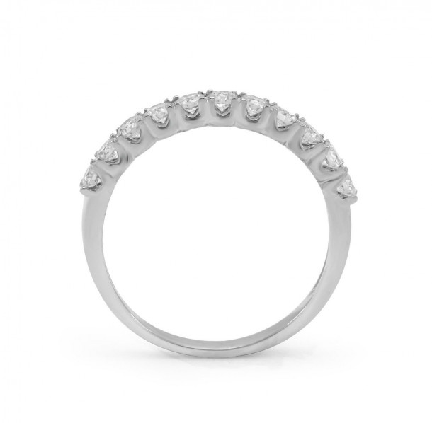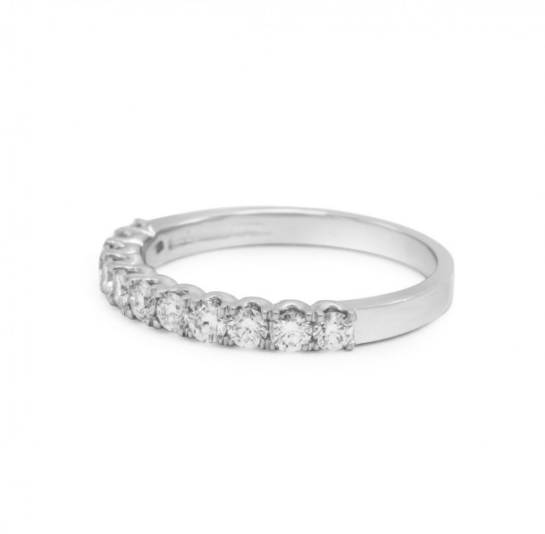 Memiliki tampilan yang rampingsalah satu model cincin tunangan dari koleksi cincin wanita V&Co Jewellery ini akan terlihat begitu indah pada jari Anda. Desainnya tidak rumit seperti cincin-cincin tunangan lain yang lebih unik atau modern tetapi dengan lapisan rhodiumyang merupakan salah satu jenis platinumcincin ini mengadopsi sifat anti korosi sehingga menjadi kuat dan tahan lama. Demi membuat emas putih yang menjadi bahan utama cincin tunangan ini lebih mengkilapbentuk variasi cincin glossy and doff sehingga warna dan kilapnya menjadi lebih maksimal. 11 butir round diamond sebesar 0,43 karat yang menjadi pusat dari cincin tunangan ini memiliki tingkat kejernihan VVS-Vs dan berada pada grade F. Jika Anda menginginkan desain cincin tunangan yang modern tetapi tetap sederhana atau simplemodel cincin yang satu ini bisa menjadi pilihan yang tepat bagi Anda