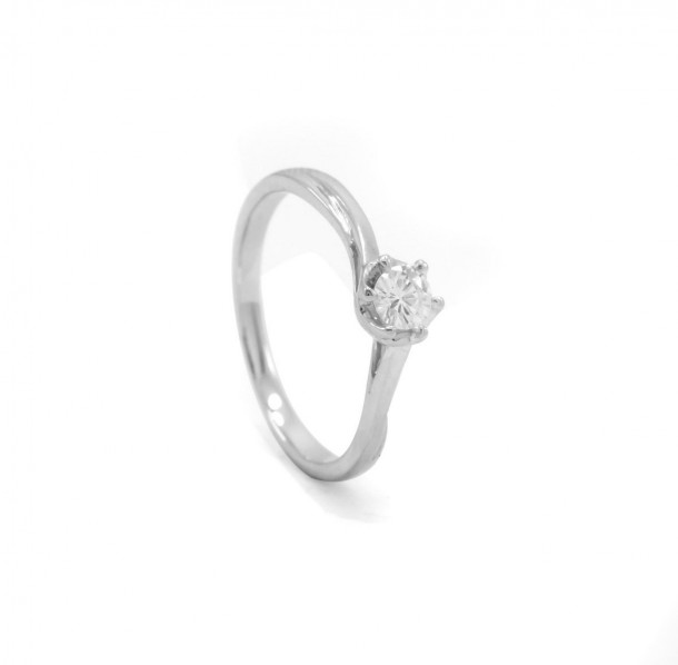 Salah satu model cincin tunangan dari koleksi cincin berlian wanita V&Co Jewellery ini bisa menjadi pilihan menarik bagi Anda yang menginginkan tampilan cincin yang modern dan stylish tapi tetap sederhana. Memiliki desain lingkar yang melilit seperti ranting pohonmodel cincin tunangan ini terbuat dari emas putih 18K. Dengan berat kurang dari 2 gramcincin ini dirancang dalam bentuk variasi cincin glossy and doff untuk mendapatkan kilau yang sempurna. Tidak hanya ituuntuk mempertahankan kilau tersebutrhodium dipergunakan untuk melapisi cincin ini sehingga memiliki sifat anti korosi dari platinum. Satu butir berlian sebesar 0,25 karat menjadi sentuhan yang begitu menawan pada bagian tengah cincin ini. Berlian yang dipergunakan memiliki bentuk potongan round diamond dengan tingkat kejernihan VVS-Vs dan grade F. Model cincin tunangan yang memiliki perpaduan gaya klasik dan modern ini bisa menjadi jawaban yang tepat bagi Anda.