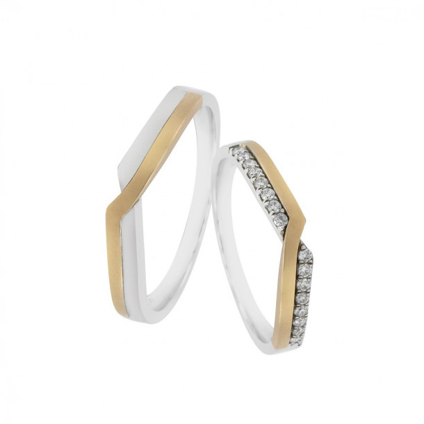 Rancangan cincin kawin ini menyerupai huruf W yang cantik, dimana untuk model cincin kawin pria lebih polos dibandingkan dengan model cincin kawin wanita yang diberikan taburan berlian-berlian dengan kejernihan atau clarity Vvs dan berada pada grade F.