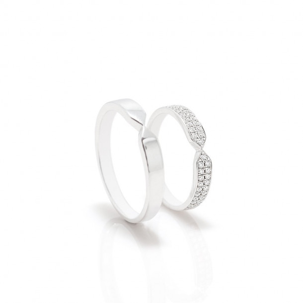 Tampil dalam kontras desain yang menarik antara model cincin kawin pria dan wanitanya, salah satu cincin dari koleksi exclusive V&Co Jewellery ini akan terlihat begitu elegan di jari Anda dan pasangan Anda. Kedua model cincin kawin ini dirancang dalam variasi glossy and doff sehingga memiliki kilau yang maksimal dari emas putih. Tidak hanya itu, cincin ini juga dilapisi dengan rhodium sehingga memiliki daya tahan tinggi dan sifat anti korosi dari platinum