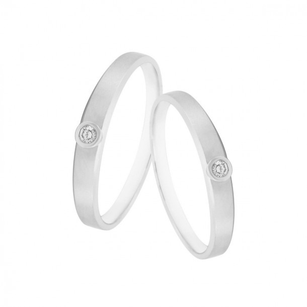 Cincin kawin ciptaan V&Co Jewellery yang satu ini terbuat dari emas putih 18 karat kualitas terbaik dan dihiasi dengan berlian yang sempurna. Berbentuk bulat yang menonjolkan berlian high grade cocok dimiliki oleh Anda yang menginginkan desain simple tapi tetap elegan. Berat cincin masing-masing 3,1 gram pada cincin laki-laki dan 2,1 gram pada cincin wanita. Berlian yang dipilih V&Co Jewellery adalah berlian dengan berat 0,04 karat dengan kualitas Very very slight inclusions (Vvs), yang berarti nyaris tidak memiliki cacat sehingga dapat memantulkan cahaya dengan sempurna. Selain itu, cincin kawin V&Co Jewellery ini dilapisi dengan rhodium sehingga memberikan kemilau yang lebih tahan lama dan bisa mencegah korosi jika cincin terkena zat kimia tertentu.