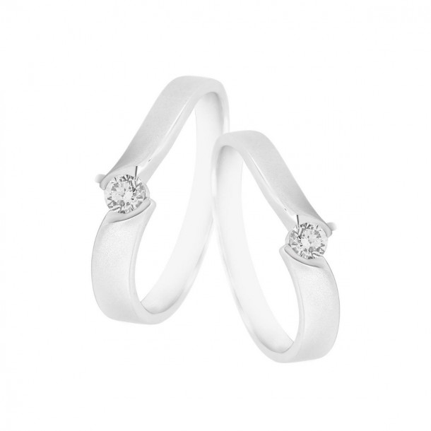 Cincin kawin V&Co Jewellery dibuat dengan model simple tapi tetap elegan dan menawan. Cincin kawin white gold yang satu ini didesain begitu menawan dengan sedikit lengkungan pada salah satu sisi yang diberi berlian. Berat cincin berkisar pada angka 4,5 gram untuk cincin laki-laki dan 3,3 gram untuk cincin kawin wanita. Cincin kawin ini dilengkapi dengan lapisan rhodium, sehingga finishing glossy yang dimiliki cincin ini bisa lebih awet dan tahan dari segala korosi. Sementara berlian yang digunakan V&Co Jewellery adalah berlian high quality dengan tingkat kejernihan Vvs atau Very very slight inclusions yang berarti berlian yang nyaris tanpa cacat di dalamnya. Untuk warna, berlian yang digunakan berada dalam grade F yaitu tidak memiliki warna campuran lain sehingga dapat memantulkan cahaya dengan sempurna. Berat berlian yang digunakan untuk cincin kawin masing-masing 0,18 karat