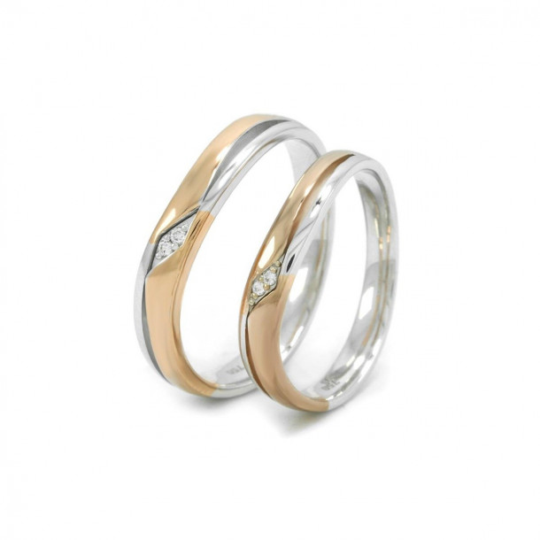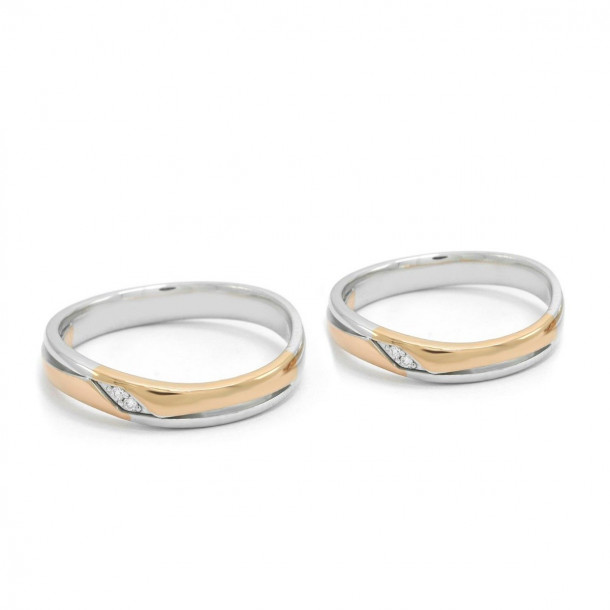 Cincin kawin V&Co Jewellery dibuat dengan model simple tapi tetap elegan dan menawan. Cincin kawin white gold yang satu ini didesain begitu menawan dengan sedikit lengkungan pada salah satu sisi yang diberi berlian. Berat cincin berkisar pada angka 4,5 gram untuk cincin laki-laki dan 3,3 gram untuk cincin kawin wanita. Cincin kawin ini dilengkapi dengan lapisan rhodium, sehingga finishing glossy yang dimiliki cincin ini bisa lebih awet dan tahan dari segala korosi.